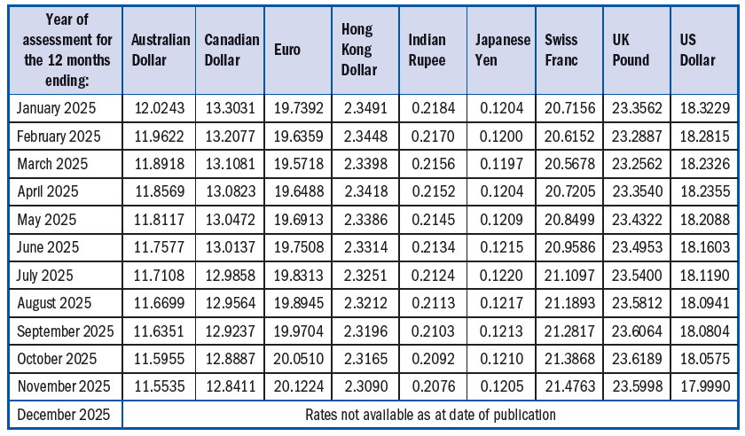 Average exchange rates for a year of assessment